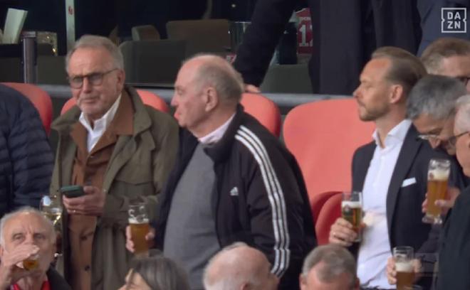 北京时间4月19日,德甲第30轮,拜仁慕尼黑4-2斯图加特,拜仁也就此夺得本赛季的德甲冠军。据《图片报》报道,当球场上还没有进行传统的“啤酒浇头庆祝”时,这一环节通常会在之后的奖杯颁发仪式上再补上,VIP看台已经率先开始了小范围的庆祝。